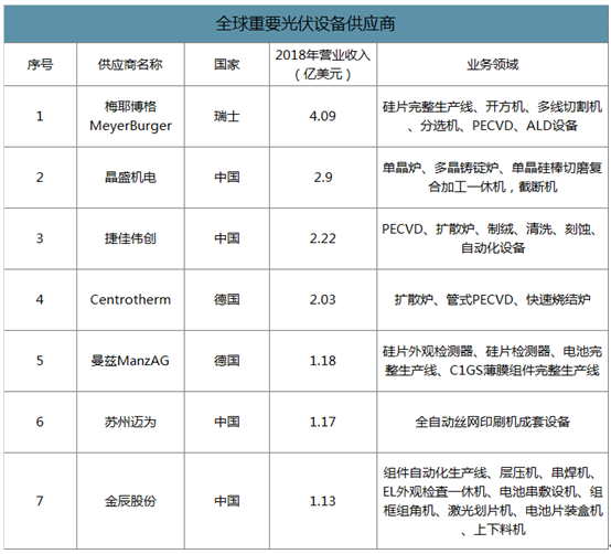 全球重要光伏设备供应商