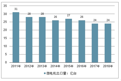 2018年我国微电机行业产量132亿台,进口量约11亿台,出口量约24亿台,国内微电机行业需求量约119亿台。