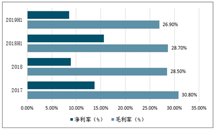 2017-2019年H1电站设备所属行业毛利率及净利率