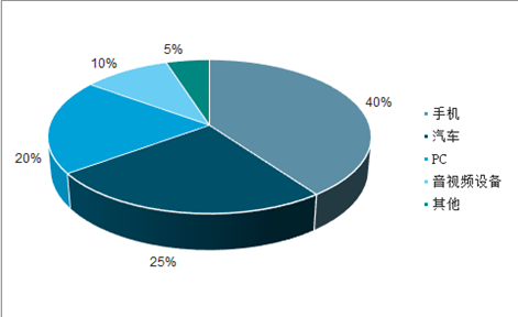 MLCC是转移胶带的重要应用领域,MLCC是由印好电极的陶瓷介质膜片以错位的方式叠合起来,经过一次性高温烧结形成陶瓷芯片,再在芯片的两端封上金属层。在MLCC生产的脱膜成型中将陶瓷粉涂布在绕行的PET膜上,从而形成一层均匀的浆料薄层,通过高温、干燥、定型、剥离最终可以得到陶瓷膜片,然后在介质薄膜上进行内部电极印刷,并将印有内电极的陶瓷介质膜片堆叠热压形成多电容器并联,堆叠过程需要使用转移胶带,转移稀有金属材料。目前MLCC主要面向手机、汽车、音视频设备、PC等下游需求领域,手机的应用占比达到40%,汽车则成为第二大需求领域,占比达到25%。