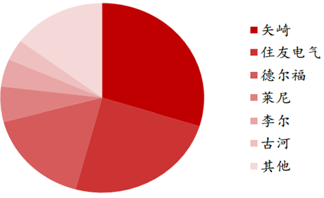 在全球汽车连接器市场中,泰科、矢崎、德尔福三巨头占据近 70%的份额。