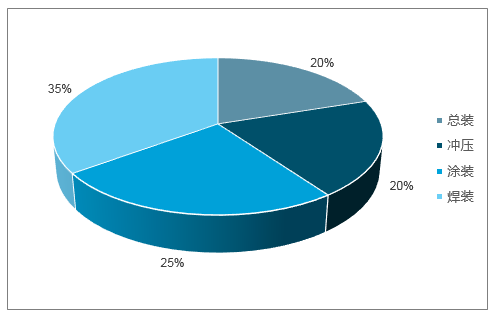 汽车整车制造各环节设备投入占比情况