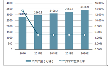 2016-2020年中国汽车产量及增长率走势