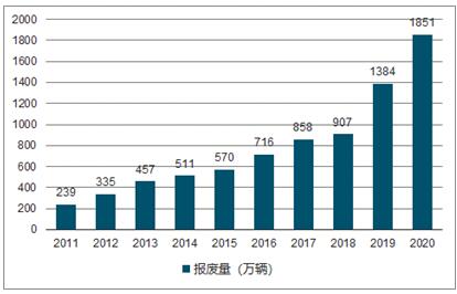 2011-2020年中国废旧汽车理论报废量预测