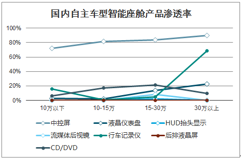 2018年国内自主车型智能座舱产品渗透率