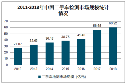 2011-2018年中国二手车检测市场规模统计情况