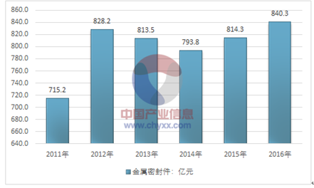 2011-2016年我国金属密封件市场规模走势图