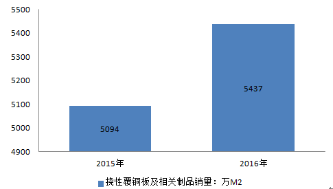 2015-2016年中国挠性覆铜板及相关制品行业销量情况