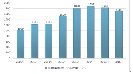 图表 2014-2017年中国铅酸蓄电池行业工业总产值情况