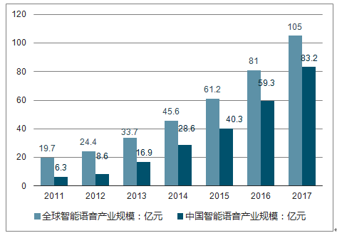 全球和中国智能语音产业规模对比
