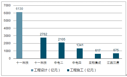我们统计了 2010-2017 年大型的已建成和计划建设的集成电路项目和其总投资金额信息,按照工程设计和洁净室工程施工分类, 统计每家公司参与项目涉及的总计投资金额,比较其参与项目涉及的总投资金额和所有项目的总投资金额,以此作为公司业务量大小的参考。已建成和在建的项目投资总额为 10192 亿, 设计领域十一科技一家独大,参与项目 21 个,涉及总投资金额 6130 亿,占总金额比例 60%; 洁净室工程施工市场比较分散,十一科技、中电二、中电四、亚翔集成、江西汉唐参与项目分别为 4 个、 9 个、 4 个、 2 个、2 个,涉及的总投资金额为 2762 亿、 2105 亿、 1341 亿、 617 亿、 675 亿。