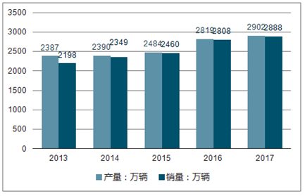 2013-2017年中国汽车产销量情况