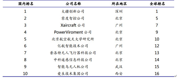 全球十大无人机中国占五席