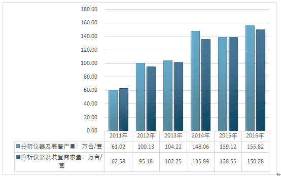 2011年~2016年我国分析仪器供需走势图