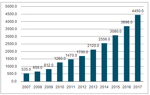 2007-2017中国空气调节器进口数量趋势图