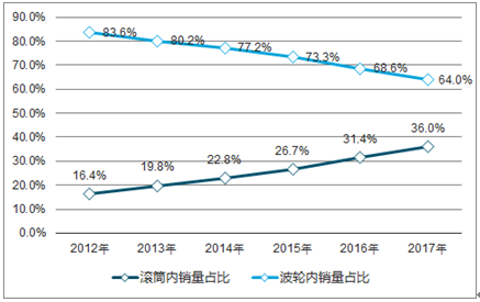 滚筒内销出货量占比持续提升