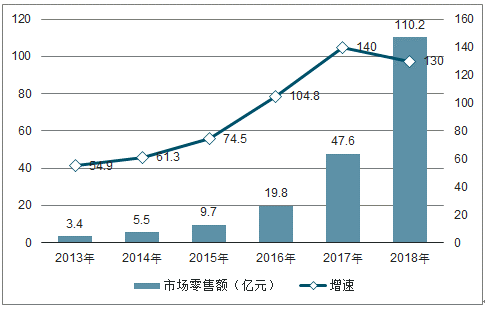 2013-2019年中国洗碗机市场零售额统计及增长情况
