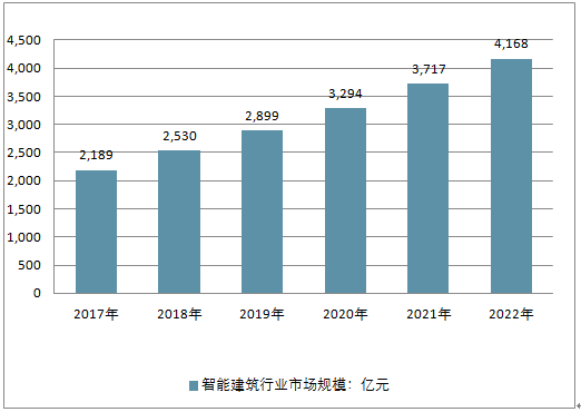 2017-2022年我国智能建筑行业市场规模预测(单位:亿元)