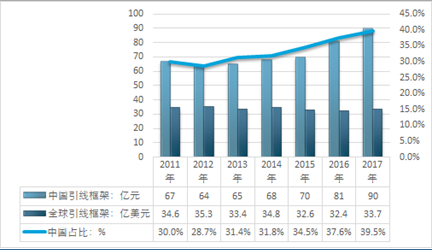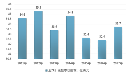 受全球半导体产业发展态势的影响,近年来全球引线框架需求市场规模波动较为明显, 2017年行业市场规模为33.7亿美元。