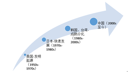 自从1958年德州仪器发明出世界上第.一块集成电路以来,集成电路迅猛发展,历史上大致从西从东形成转移。从上世纪50年代发展至今,集成电路大体经历了三大发展阶段,分别是:在美国发明起源——在日本加速发展——在韩国台湾分化发展。