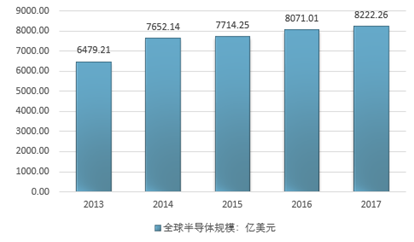 全球半导体产业的销售额已经从2013年的6479.21亿美元增长到2017年的8222.26亿美元,同比增长1.9%。在这期间,全球半导体销售规模平均增速保持在6.4%左右。