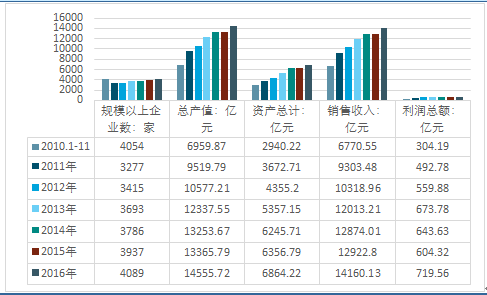 2016年我国屠宰及肉类加工行业规模总资产达到6864.21亿元;行业销售收入为14160.13亿元;2016年屠宰及肉类加工行业利润总额为719.56亿元。