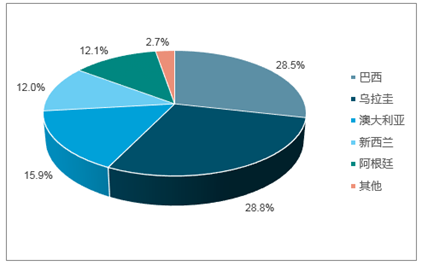 中国冻牛肉进口量国别占比