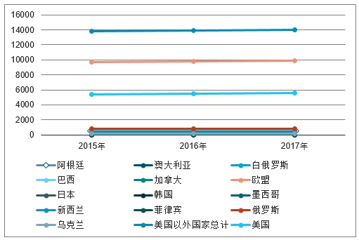 2015-2017年全球分国家奶酪产量走势(千吨)