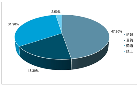 2019年中国保健品各销售渠道占比(单位:%)