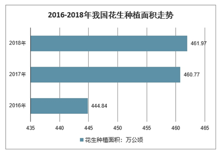 近年来我国花生种植面积维持在400万公顷以上,2018年我国花生种植面积为461.97万公顷,种植面积从2014年开始实现连增。