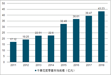 2011-2018年中国干黄花菜零售市场规模(亿元)