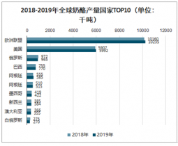 2018-2019年全球奶酪产量国家TOP10(单位:千吨)