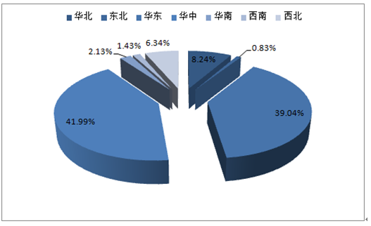 图表 2014年全国粮食加工与制造行业累计主营业务收入地区占比情况