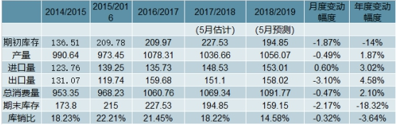 图表 2014-2019年度世界玉米供给与消费情况