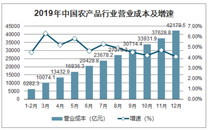 2019年我国农产品行业营业成本达4.2万亿元,同比增长4. 1%,销售费用、财务费用分别下降2019年,我国农产品行业营业成本达4.2万亿元,同比增长4. 1%,销售费用、财务费用分别下降0.3%、 7.1%, 管理费用增长0.8%。