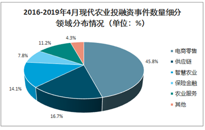2016-2019年4月现代农业投融资事件数量细分领域分布情况(单位:%)
