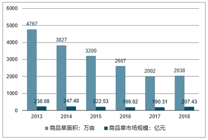 2013-2018年中国商品草种植面积及优质牧草市场需求规模走势