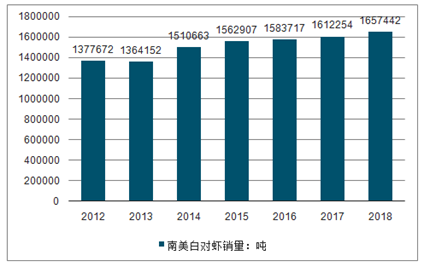 2012-2019年我国南美白对虾销量走势