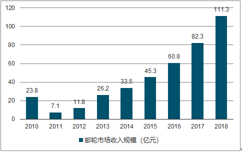 2010-2018年中国邮轮市场收入规模(亿元)