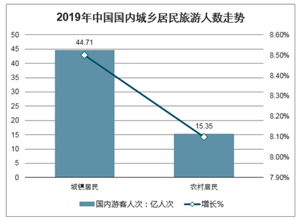 2019年全年实现旅游总收入6.63万亿元,同比增长11%。国内旅游收入5.73万亿元,比上年同期增长11.7%。其中,城镇居民花费4.75万亿元,增长11.6%;农村居民花费0.97万亿元,增长12.1%。