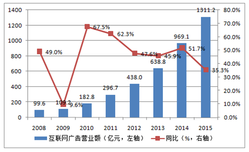 中国互联网广告规模增长迅速,15年超千亿