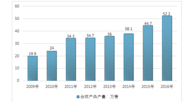 2010-2016年中国台球行业产量情况