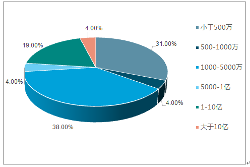 从2017年中国农村电商融资金额占比来看:融资金额在1000万元-5000万元之间的占比最大,达38%;其次为融资小于500万元,占比31%;值得提出的是融资金额在5000万元以下的占七成。