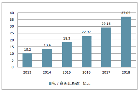2013-2019年中国电子商务交易额统计情况