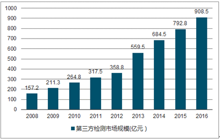 2008-2016年中国第三方检测市场规模情况