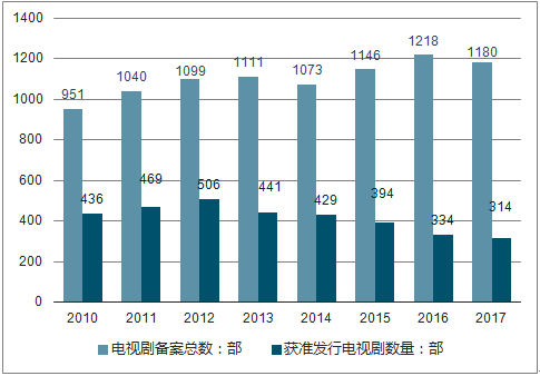 2010-2017年电视剧备案及获准发行数量情况