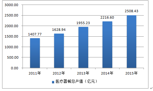 2011-2015年中国医疗器械行业产值情况