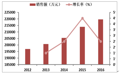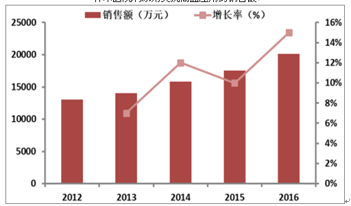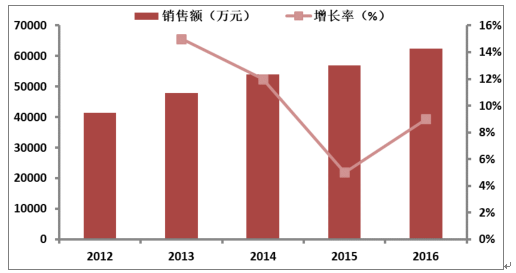 图表4:近几年血管紧张素Ⅱ受体拮抗剂全球规模(单位:亿美元,%)