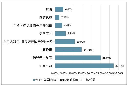2017 年国内样本医院免疫抑制剂市场份额