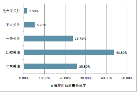 93.3%情趣用品用户会关注产品质量,其中,25.8%用户表示非常关注,43.8%用户表示比较关注。分析师认为,产品质量水平将成为用户对品牌及购买平台的评价指标,未来品牌产品质量也将成为其在行业突围的核心竞争力。